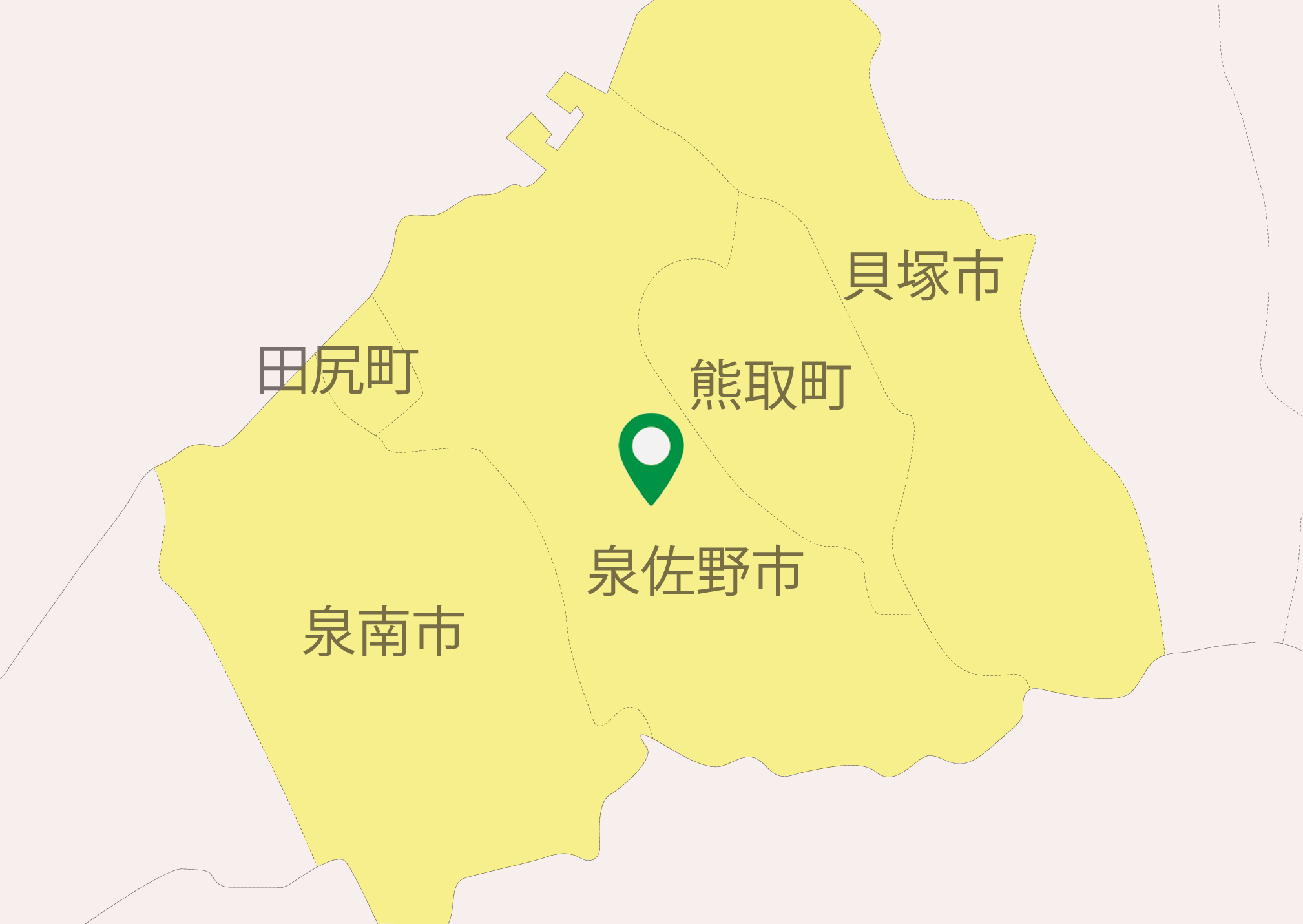 ペットシッターてくてくの対応エリアは、泉佐野市、貝塚市、熊取町、田尻町、泉南市を中心としております。